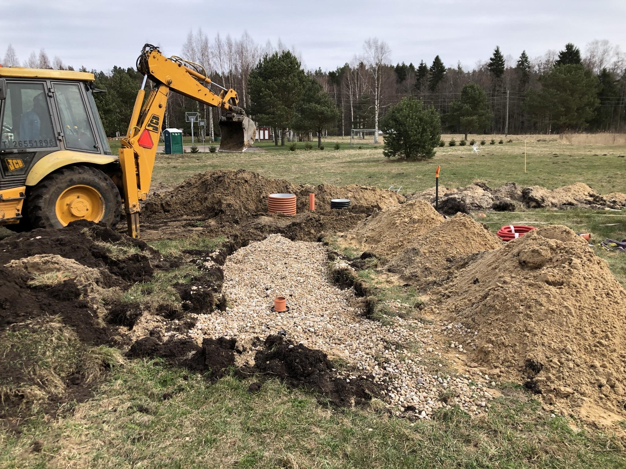 Как правильно установить канализационный септик? Система канализационного септика в отличии от биологической очистки должна обязательно иметь инфильтрационное поле. Так как в системе канализационный септик,инфильтрационное поле является частью системы, завершающей очистку сточной воды. На нашем объекте нам пришлось устанавливать насосную станцию для поднятия уровня инфильтрационного поля, в противном случае оно бы не работало и загрязняло природу. Причина поднятия- это уровень грунтовой воды и условия грунта. Система выполнена из канализационного септика 2000 литров, насосной станции и инфильтрационных туннелей Graf.